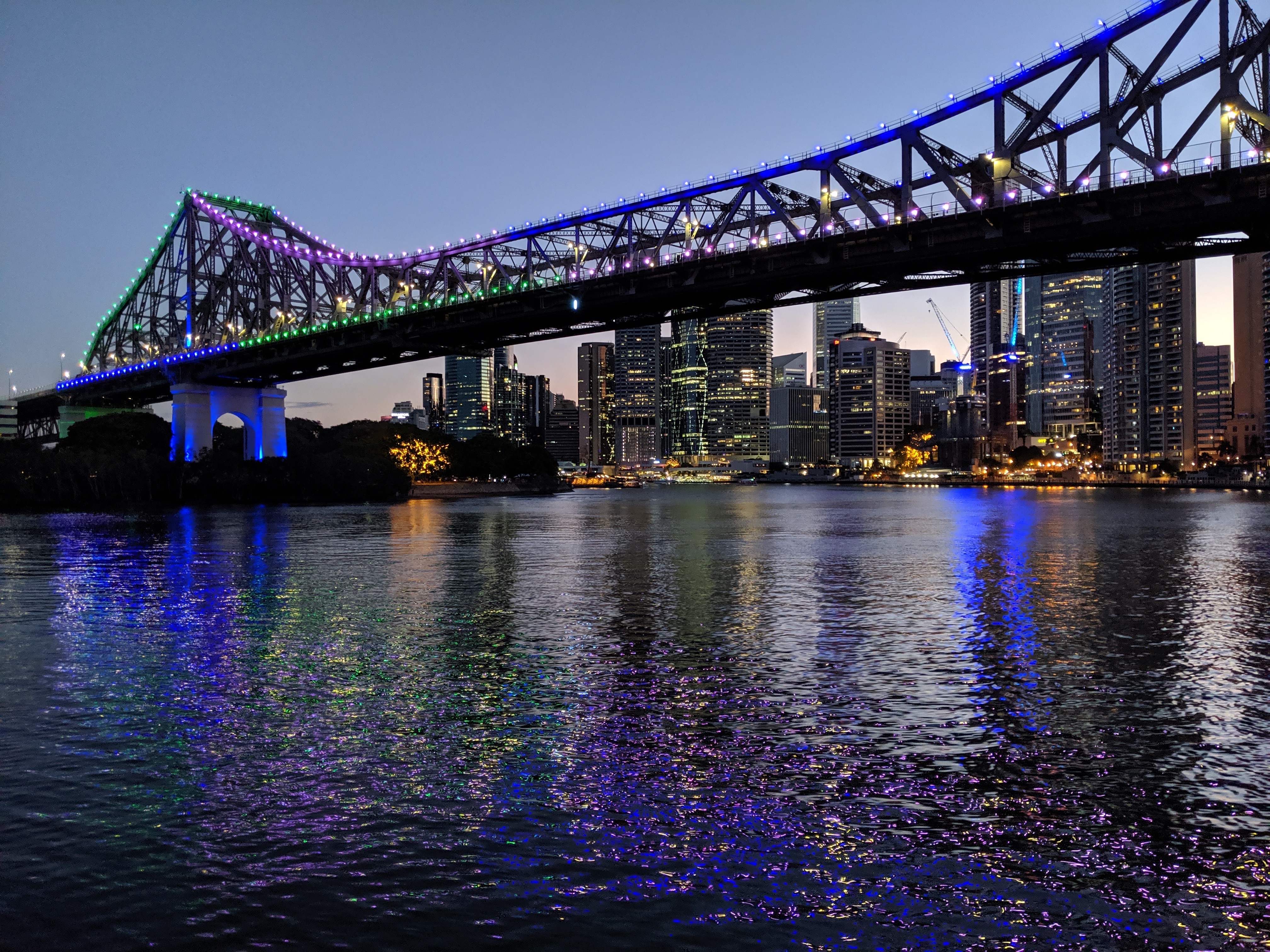 The Story Bridge, Victoria Bridge and Reddacliff Place sculptures Donna Marcus: Steam 2006 will all be lit up green on 22 October 2019.