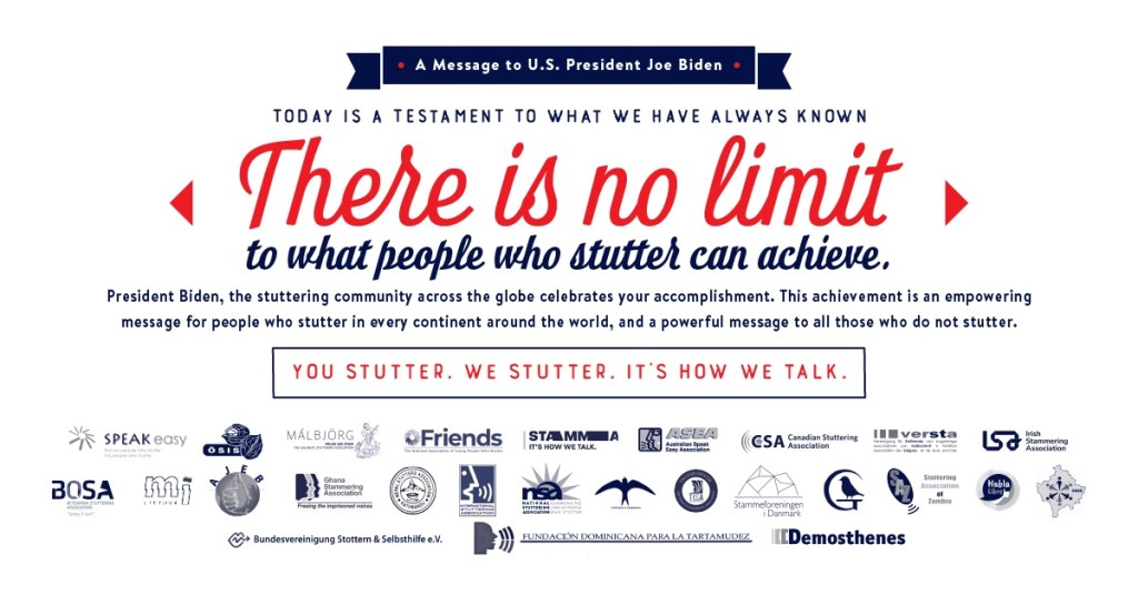 Stuttering related organisations around the world have signed a letter of congratulations to President Biden as the first US President who has a stutter.